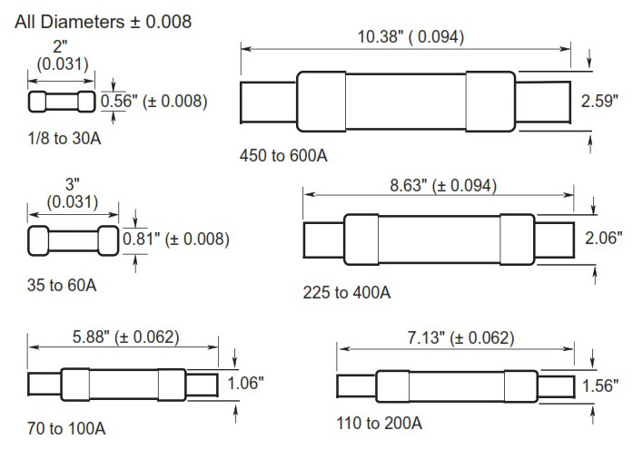 NOS (600V), 1-600A, General Purpose Fuses